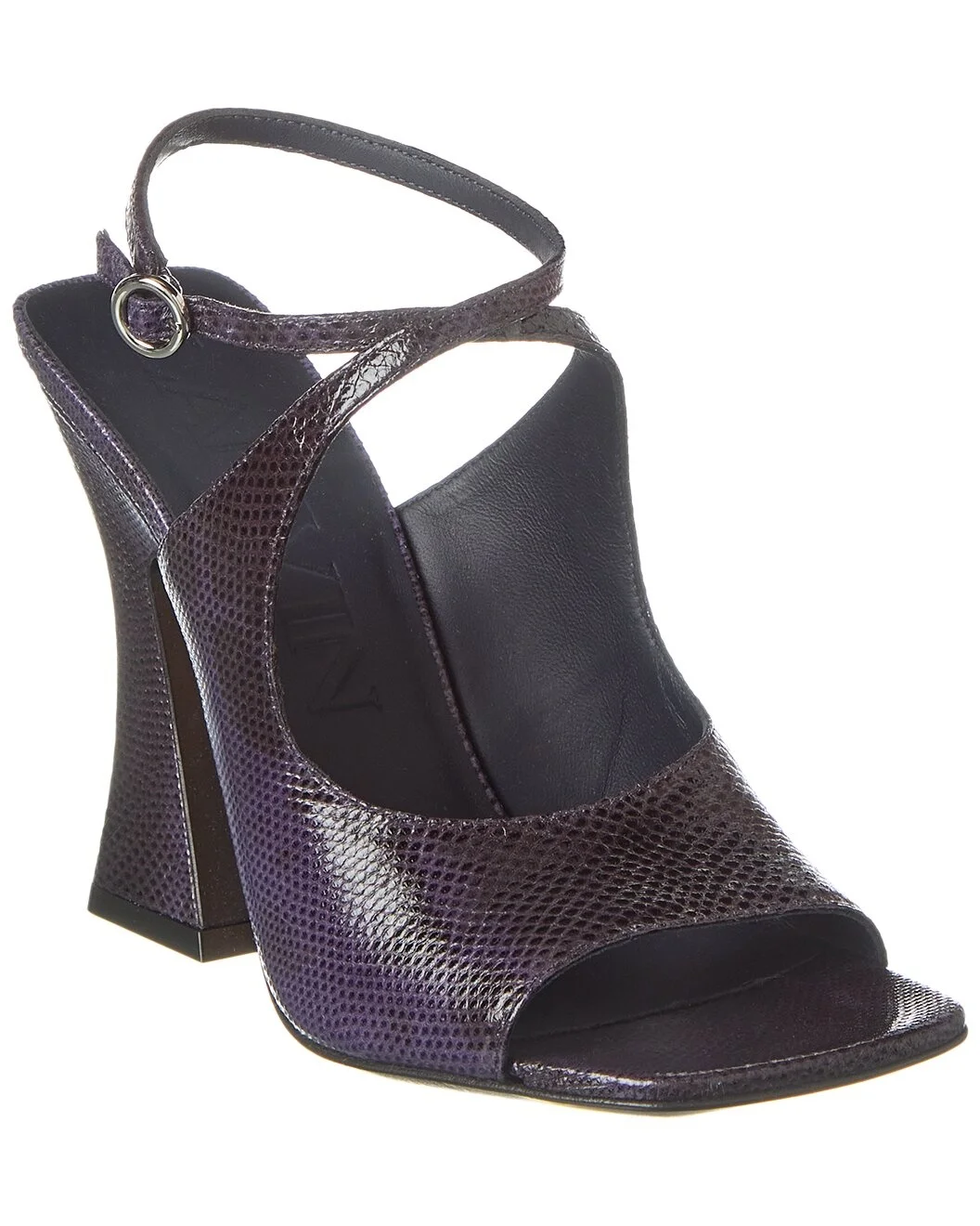 - Please note: Size selections are European. For US conversions, please reference size chart. - Made in Italy - Color/material: raisin embossed leather - Design details: silver-tone hardware, round buckle - Adjustable ankle strap with buckle closure - Lightly padded leather insole - Smooth leather sole - 4.5in heel - Please note: All measurements are approximate and were taken from a size 36; slight variations may occur. - Our products are 100% genuine. In some cases we purchase merchandise from trusted independent suppliers and not directly from the brand owner. In all cases we stand by the authenticity of every product sold on our site.