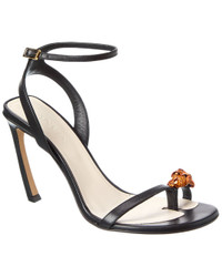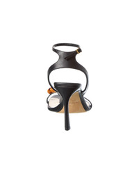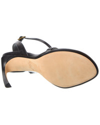 - Please note: Size selections are European. For US conversions, please reference size chart. - Made in Italy - Color/material: black leather - Design details: gold-tone hardware, embellished toe ring - Adjustable ankle strap with buckle closure - Lightly padded leather insole - Smooth leather sole - 4in heel - Please note: All measurements are approximate and were taken from a size 37; slight variations may occur. - Our products are 100% genuine. In some cases we purchase merchandise from trusted independent suppliers and not directly from the brand owner. In all cases we stand by the authenticity of every product sold on our site.