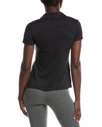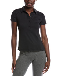 - Color/pattern: black - Approximately 23in from shoulder to hem - Model is 5'10 and is wearing a size 4. Measurements may vary slightly by size. - Design details: spread collar, raised logo and side slits at hem - Button placket - 88% recycled nylon, 12% elastane - Contrasts: 86% recycled nylon, 14% elastane - Machine wash - Imported