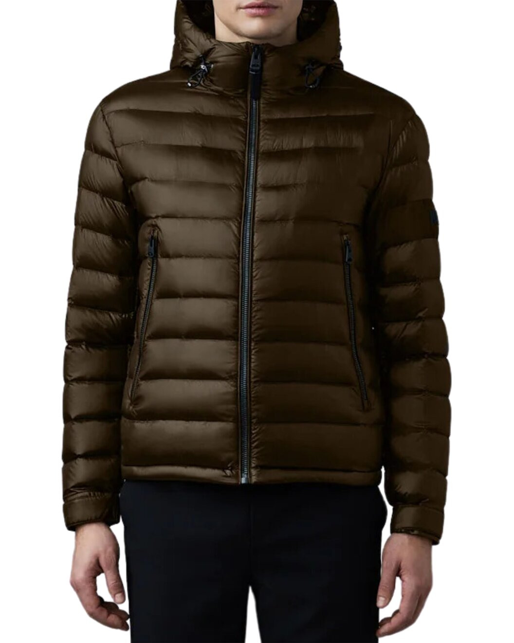 - About the brand: Elevated outerwear. Unique functionality. - Keagan-Rs Down Jacket in army - Weightless nano down jacket, - Hood with adjustable drawcord storm visor, - Centre front zip closure, - Long zip waist pockets, - Shirttail hem with hidden adjustable drawcord, - Adjustable Velcro tab cuffs, - Contrast weave panel with silicone wordmark on left sleeve, - Packable, - Classic fit, - Zipper closure - Shell: 100% recycled nylon - Lining: 100% recycled nylon - Filling: 90% down, 10% feathers - Machine wash only - Imported - The Men's Size Guide