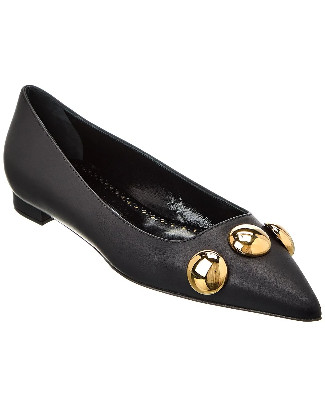 - About the brand: Beautifully feminine, elegant, and iconic. - Please note: Size selections are European. For US conversions, please reference size chart. - Based on feedback from Members, this brand typically runs small. We suggest sizing up a half size for most styles. - Made in Italy - Chappa Leather Flat in black leather and gold-tone hardware with oversized studs - Lightly padded leather insole - Smooth leather sole - Our products are 100% genuine. In some cases we purchase merchandise from trusted independent suppliers and not directly from the brand owner. In all cases we stand by the authenticity of every product sold on our site.
