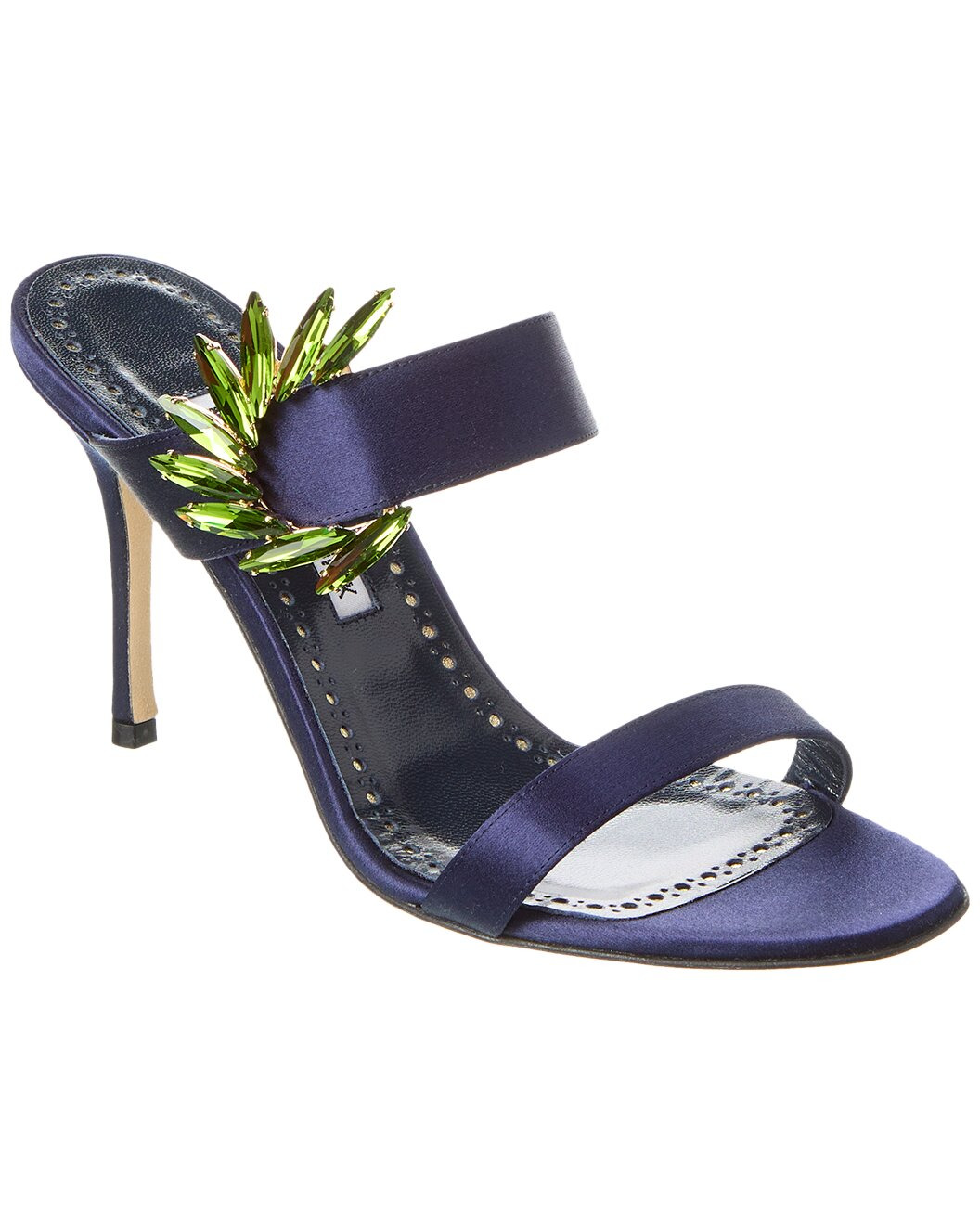 - About the brand: Beautifully feminine, elegant, and iconic. - Please note: Size selections are European. For US conversions, please reference size chart. - Based on feedback from Members, this brand typically runs small. We suggest sizing up a half size for most styles. - Made in Italy - Chivela 90 Satin Sandal in navy satin and silver-tone hardware with crystal embellishments - Lightly padded leather insole - Smooth leather sole - 3.5in heel - Please note: All measurements are approximate and were taken from a size 37; slight variations may occur. - Our products are 100% genuine. In some cases we purchase merchandise from trusted independent suppliers and not directly from the brand owner. In all cases we stand by the authenticity of every product sold on our site.