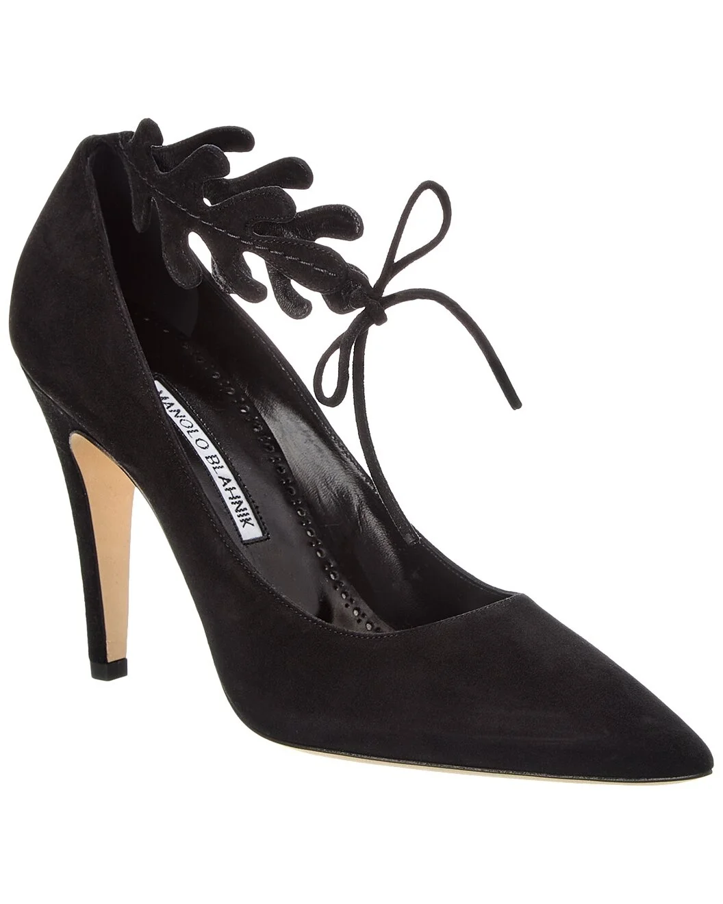 - About the brand: Beautifully feminine, elegant, and iconic. - Please note: Size selections are European. For US conversions, please reference size chart. - Based on feedback from Members, this brand typically runs small. We suggest sizing up a half size for most styles. - Made in Italy - Florettehi 105 Suede Pump in black suede with pointy-toe - Self-tie ankle wrap closure - Lightly padded leather insole - Smooth leather sole - 4.5in heel - Please note: All measurements are approximate and were taken from a size 37; slight variations may occur. - Our products are 100% genuine. In some cases we purchase merchandise from trusted independent suppliers and not directly from the brand owner. In all cases we stand by the authenticity of every product sold on our site.