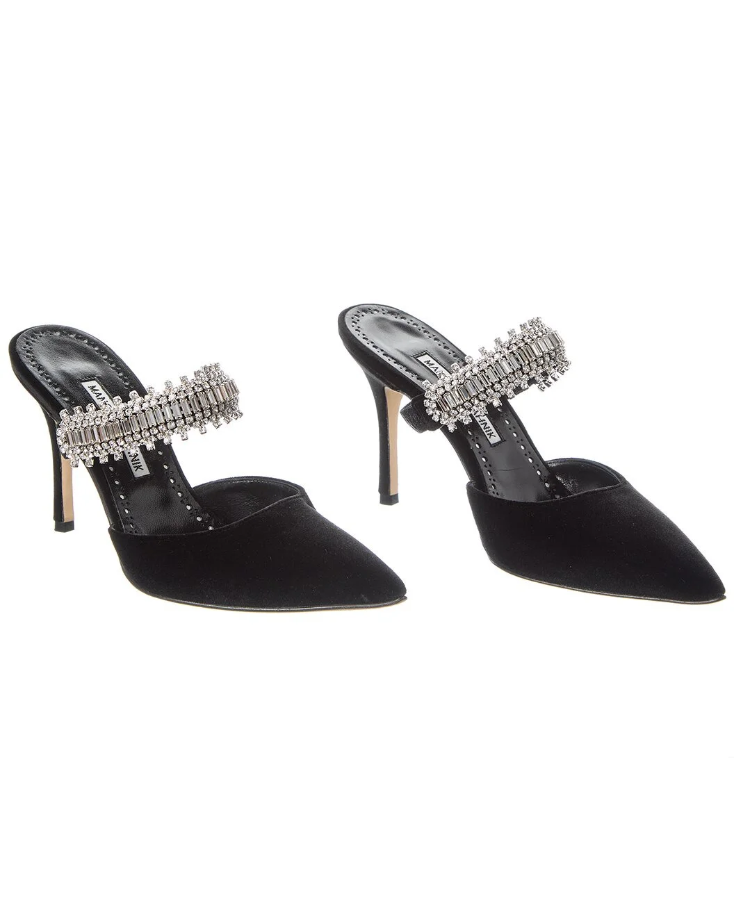 - About the brand: Beautifully feminine, elegant, and iconic. - This is an authentic, pre-loved piece. This item may show signs of wear. - For more information on condition, please see our condition guide at the bottom - Please note: Size selections are European. For US conversions, please reference size chart. - Based on feedback from Members, this brand typically runs small. We suggest sizing up a half size for most styles. - Made in Italy - Lutara 90 Velvet Pump in black velvet and silver-tone hardware with crystal-embellished strap - Lightly padded leather insole - Smooth leather sole - 3.5in heel - Please note: All measurements are approximate and were taken from a size 37; slight variations may occur. - Our products are 100% genuine. In some cases we purchase merchandise from trusted independent suppliers and not directly from the brand owner. In all cases we stand by the authenticity of every product sold on our site. - The Pre-Loved Condition Guide