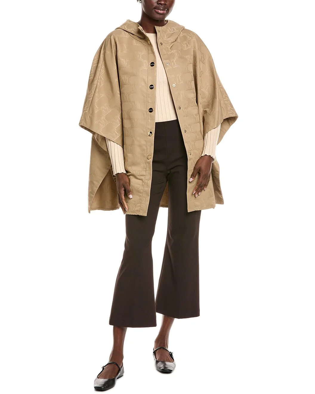 - About the brand: Feminine and sophisticated pieces with an undeniable Italian influence. - Aeroso Cape in brown with jacquard design and front pockets - Approximately 34in from shoulder to hem - Model is 5'10 and is wearing a size OS. One size fits most. - Snap closure - 100% polyester - Dry clean only - Made in Italy