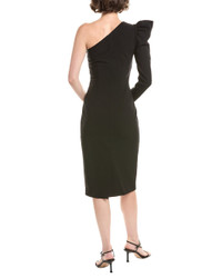 - About the brand: Feminine and sophisticated pieces with an undeniable Italian influence. - Falda Jersey Dress in black with puff sleeve, and asymmetrical neck - Approximately 38in from shoulder to hem - Model is 5'10 and is wearing a size 2. Measurements may vary slightly by size. - Left side zip - 78% viscose, 16% polyamide, 6% elastane - Lining: 100% polyester - Dry clean only - Made in Italy