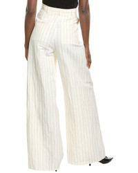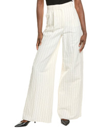 - About the brand: Feminine and sophisticated pieces with an undeniable Italian influence. - Linen-Blend Trouser in white/black stripe with pleated front, belt loops, and two front pockets - Inseam approximately 35in; 14in rise - Model is 5'9 and is wearing a size 2. Measurements may vary slightly by size. - Zip fly with slide tab closure - 58% flaxlinen, 42% cotton - Dry clean only - Made in Italy