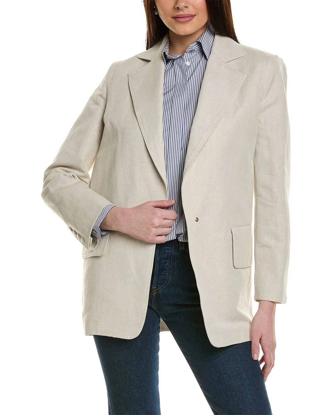 - About the brand: Feminine and sophisticated pieces with an undeniable Italian influence. - Mosa Linen-Blend Jacket in white with notch lapel, two front pockets, and snap cuffs - Approximately 30in from shoulder to hem - Model is 5'11 and is wearing a size 4. Measurements may vary slightly by size. - Snap closure - 54% cotton, 46% linen - Dry clean only - Made in Italy