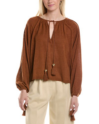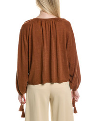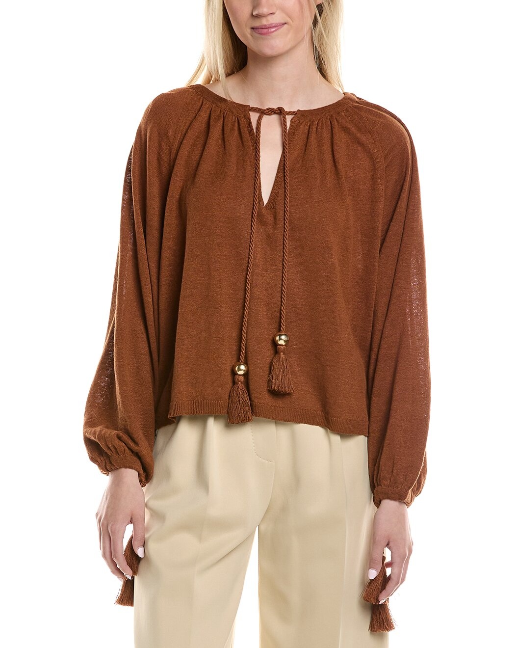 - About the brand: Feminine and sophisticated pieces with an undeniable Italian influence. - Quirite Linen Top in chocolate with tassel details, and ribbed trim - Approximately 23in from shoulder to hem - Model is 5'11 and is wearing a size medium. Measurements may vary slightly by size. - Self-tie front - 100% linen - Hand wash - Imported