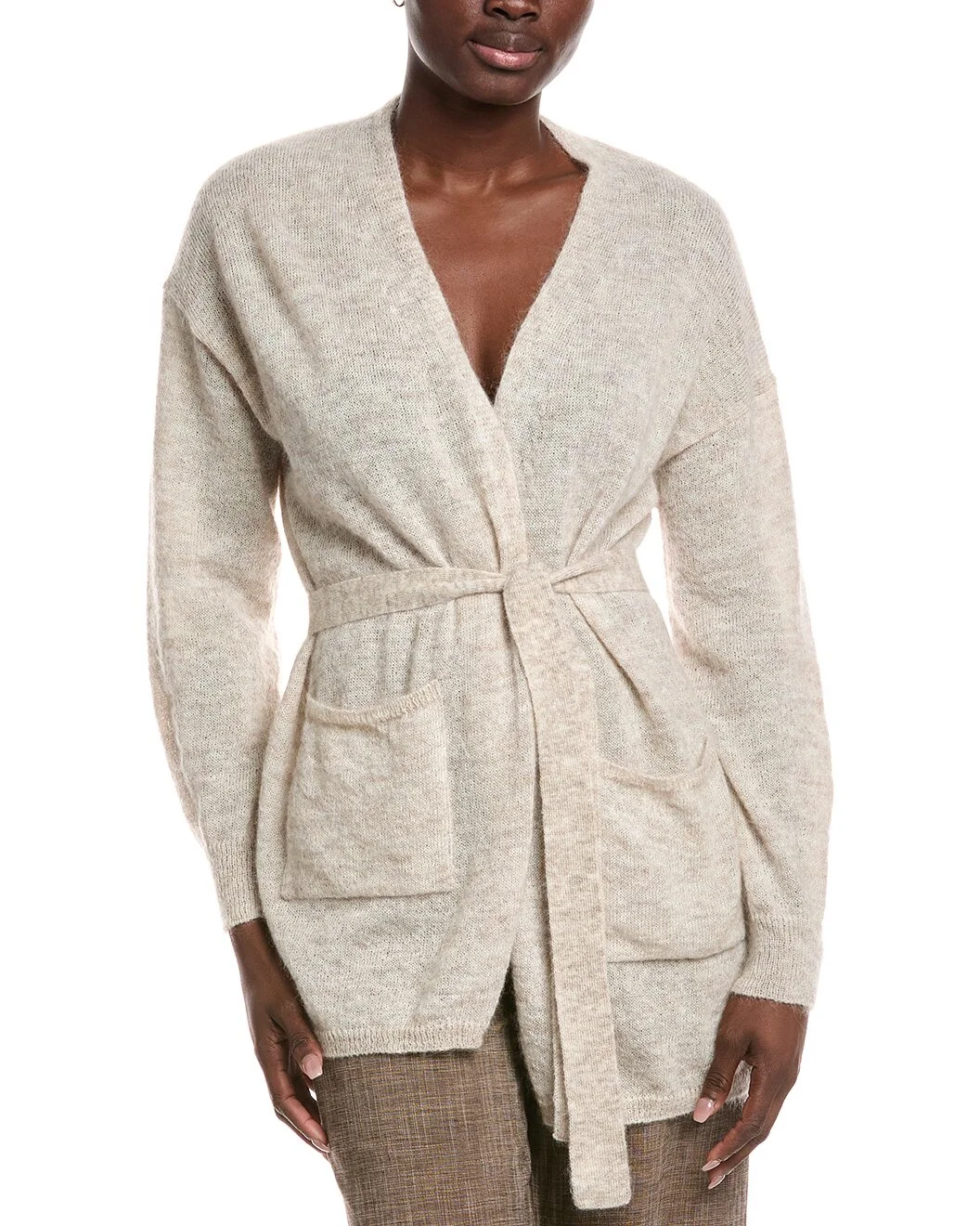 - About the brand: Feminine and sophisticated pieces with an undeniable Italian influence. - Visino Mohair-Blend Cardigan in parchment with front pouch pockets, and fabric waist tie - Approximately 31in from shoulder to hem - Model is 5'10 and is wearing a size medium. Measurements may vary slightly by size. - Slip-on styling - 50% nylon, 46% mohair, 4% wool - Hand wash - Imported