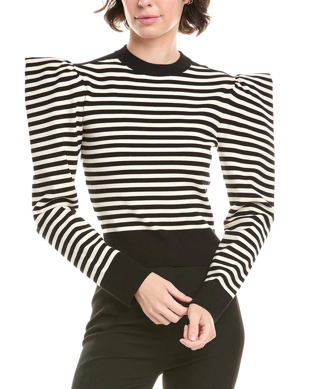 - About the brand: Feminine and sophisticated pieces with an undeniable Italian influence. - Volpino Sweater in white and black with puff sleeves - Approximately 20in from shoulder to hem - Model is 5'9 and is wearing a size medium. Measurements may vary slightly by size. - 62% viscose, 38% polyester - Hand wash - Imported