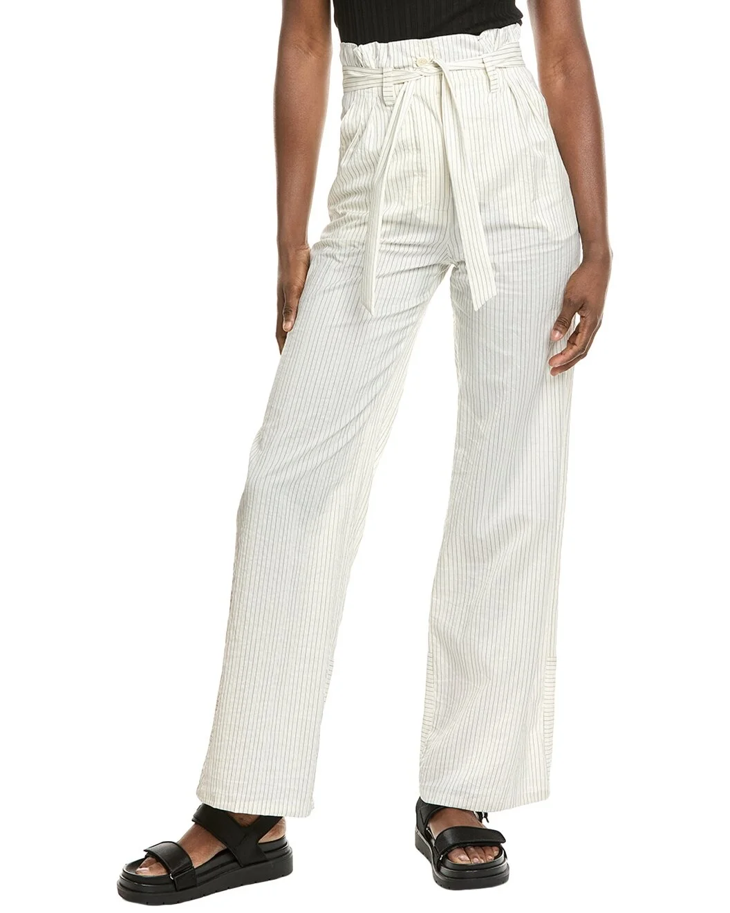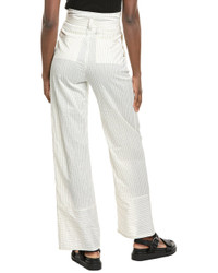 - About the brand: Feminine and sophisticated pieces with an undeniable Italian influence. - Silk-Blend Trouser in white pinstripe with self-tie waist belt, two front pockets, and two rear faux pockets - Inseam approximately 31in; 14in rise - Model is 5'9 and is wearing a size 2. Measurements may vary slightly by size. - Zip fly with button closure - 80% cotton, 20% silk - Dry clean only - Made in Italy