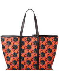- About the brand: Luxury styles with a signature monogram. - Made in Italy - Cubic Monogram Jacquard Tote in orange/red jacquard and gold-tone hardware - Design details: removable pouch, nappa leather trim, cubic monogram jacquard - Interior design details: microfiber lining with suede finish - Measures 12.2in wide x 5.9in high x 20.59in deep - Top handle drops 9in - Open top - Please note: All measurements were taken by hand and are approximate; slight variations may occur. - Our products are 100% genuine. In some cases we purchase merchandise from trusted independent suppliers and not directly from the brand owner. In all cases we stand by the authenticity of every product sold on our site.