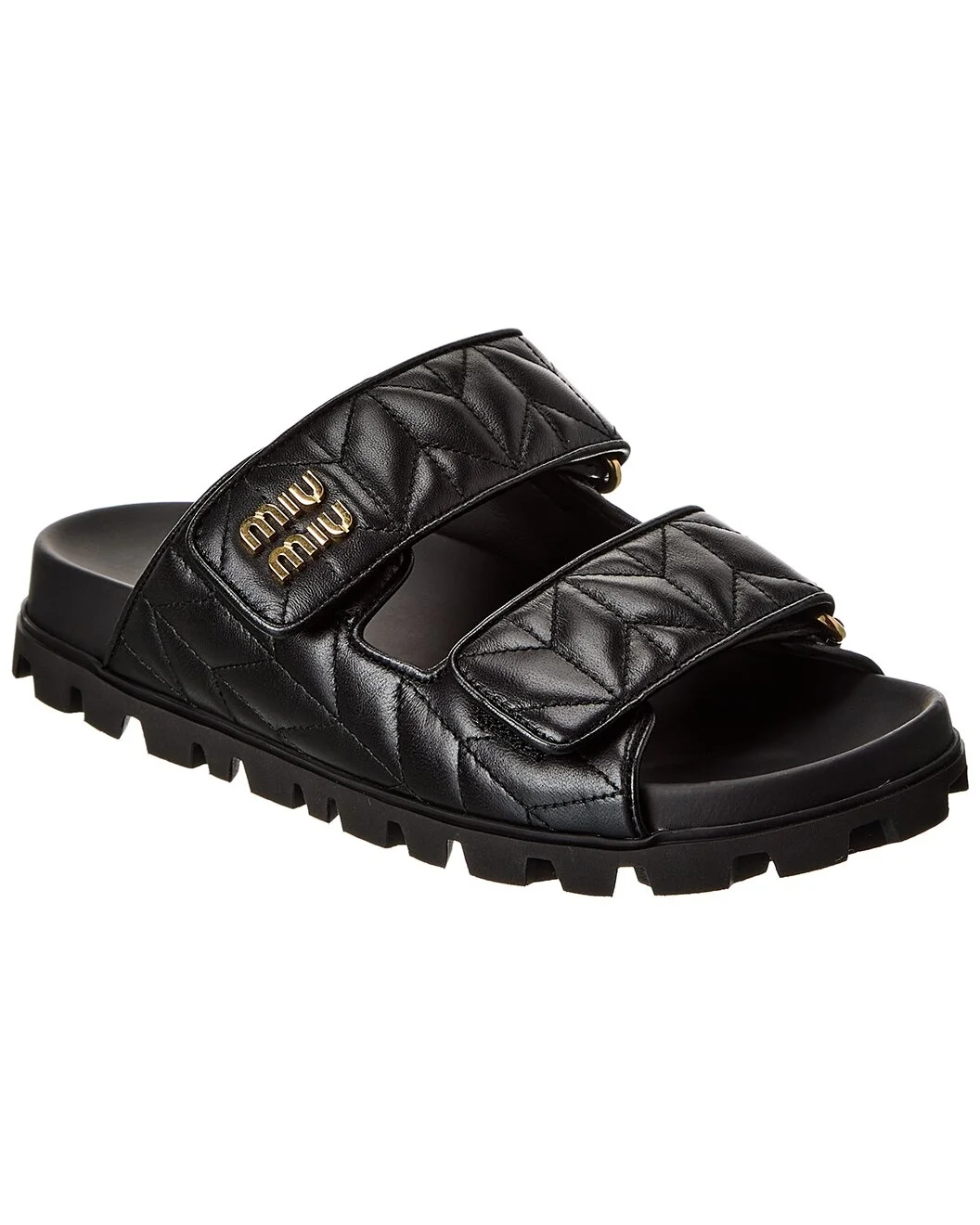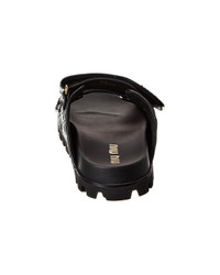 - About the brand: Rebellious, seductive femininity. - Please note: Size selections are European. For US conversions, please reference size chart. - Made in Italy - Logo Leather Sandal in black leather and shiny brass hardware with metal lettering logo - Adjustable straps with Velcro closures - Smooth leather insole - Rubber sole with traction - Our products are 100% genuine. In some cases we purchase merchandise from trusted independent suppliers and not directly from the brand owner. In all cases we stand by the authenticity of every product sold on our site. - We are NOT an authorized dealer of this product.
