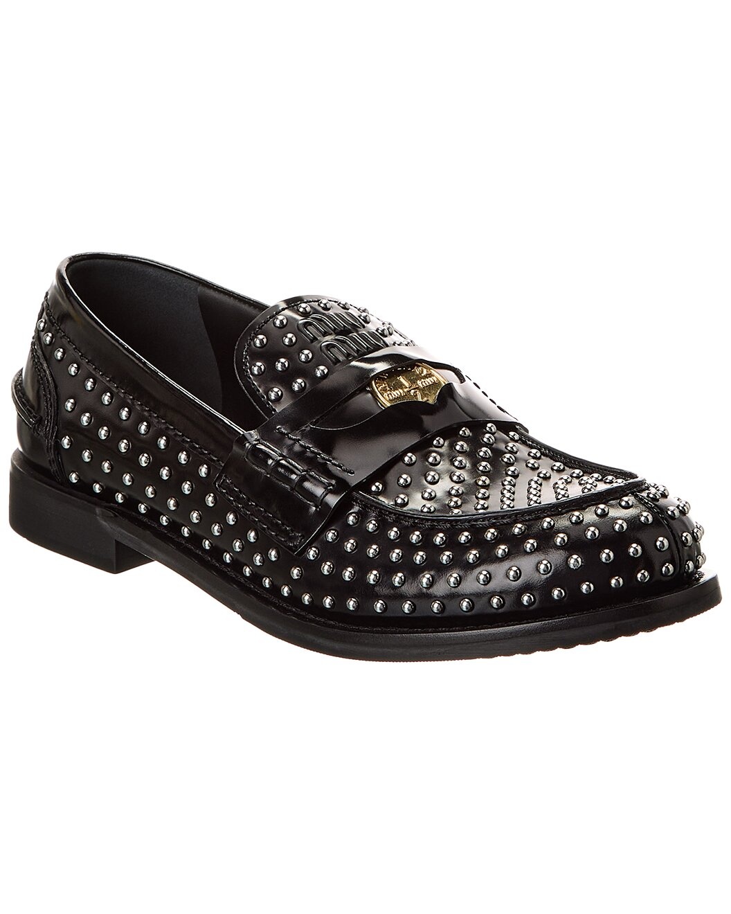 - About the brand: Rebellious, seductive femininity. - Please note: Size selections are European. For US conversions, please reference size chart. - Made in Italy - Logo Studded Leather Loafer in black leather and shiny brass and polished steel hardware with stud embellishments and logo coin - Lightly padded leather insole - Man-made sole - 0.75in heel - Please note: All measurements are approximate and were taken from a size 37; slight variations may occur. - Our products are 100% genuine. In some cases we purchase merchandise from trusted independent suppliers and not directly from the brand owner. In all cases we stand by the authenticity of every product sold on our site. - We are NOT an authorized dealer of this product.