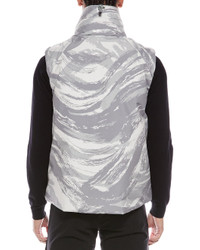 - About the brand: Practical and fashionable outerwear from the slopes to the streets. - x Hyke Vanil Print Vest in grey camo with stand collar with hideaway hood, storm flap accents, two front zippered pockets, quilted lining and inner drawcord at hem - Approximately 26in from shoulder to hem - Model is 6'1 and is wearing a size 1. Measurements may vary slightly by size. - Zipper front - Lightweight - 100% polyester - Lining: 100% polyamide - Fill: 90% goose down, 10% feathers - Machine wash - Our products are 100% genuine. In some cases we purchase merchandise from trusted independent suppliers and not directly from the brand owner. In all cases we stand by the authenticity of every product sold on our site.