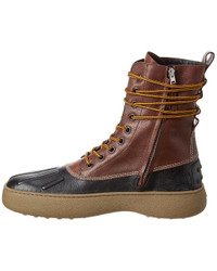 - Please note: Size selections are UK. For US conversions, please reference size chart. - Made in Italy - Color/material: brown and black leather - Design details: silver-tone hardware, logo patch and inner side zipper - Lace-up closure - Lightly padded leather insole - Rubber sole with traction - 1.5in platform - 8in shaft - 12in boot circumference - Please note: All measurements are approximate and were taken from a size 10; slight variations may occur. - Our products are 100% genuine. In some cases we purchase merchandise from trusted independent suppliers and not directly from the brand owner. In all cases we stand by the authenticity of every product sold on our site. - The Boot Size Guide
