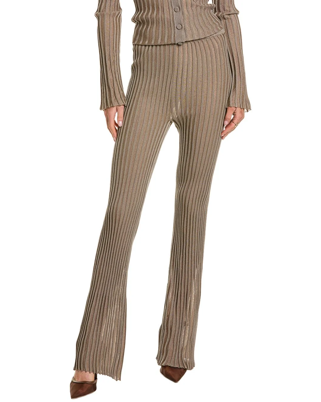 - Color/pattern: oyster lurex - Inseam approximately 36in - Model is 5'10 and is wearing a size small. Measurements may vary slightly by size. - Design details: shimmer rib knit and elastic waist - Slip-on styling - 48% rayon, 22% Tencel, 12% nylon, 10% lurex, 8% polyester - Dry clean only - Imported
