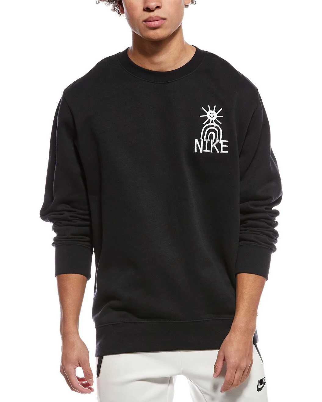 - About the brand: Innovative and inspirational athletic wear. - Sportswear Fleece Crew in black - With sunshine, rainbows and smiley-face graphics, this comfy sweatshirt will have you dishing out the positivity every time you wear it.Smooth on the outside and soft on the inside, brushed fleece is the go-to sweatshirt material for colder temperatures.Soft, stretchy ribbed cuffs, collar and hem keep the sweatshirt in place and hold in your body heat, helping you stay warm in cooler temps.Sunny graphics invoke a fun, youthful optimism to keep you smiling all day. - Machine wash - Imported - The Men's Size Guide