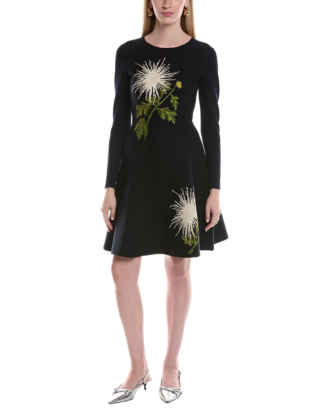 CHRYSANTHEMUM JACQUARD LONG SLEEVE DRESS