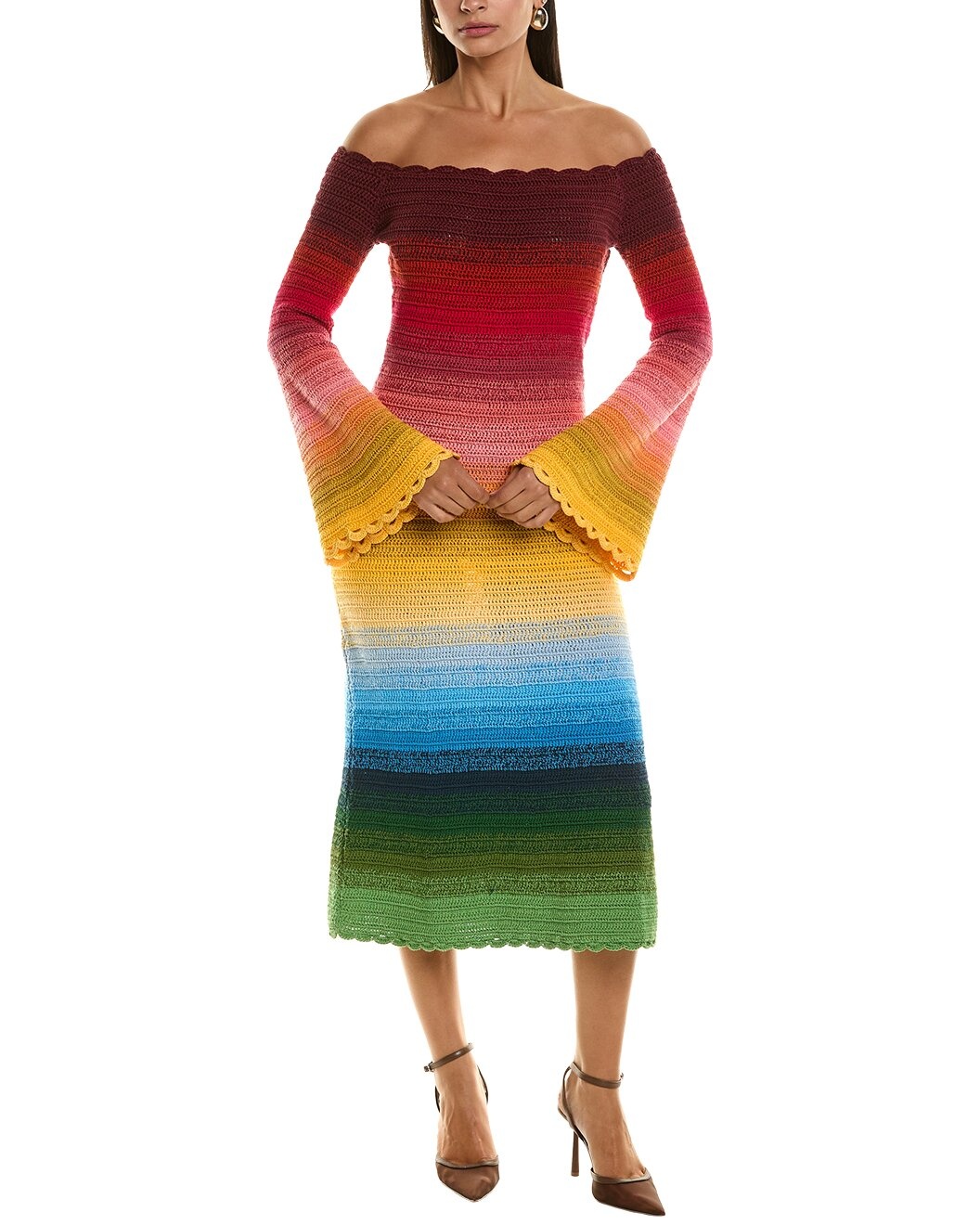 - Price as marked - About the brand: Feminine. Transcendent. Enduring. - Sweaterdress in rainbow with multicolor knit design, bell sleeves, and scalloped trim - Approximately 49in from shoulder to hem - Model is 5'10 and is wearing a size small. Measurements may vary slightly by size. - Left side on-seam zipper - 100% cotton - Dry clean only - Made in the USA - Our products are 100% genuine. In some cases we purchase merchandise from trusted independent suppliers and not directly from the brand owner. In all cases we stand by the authenticity of every product sold on our site.