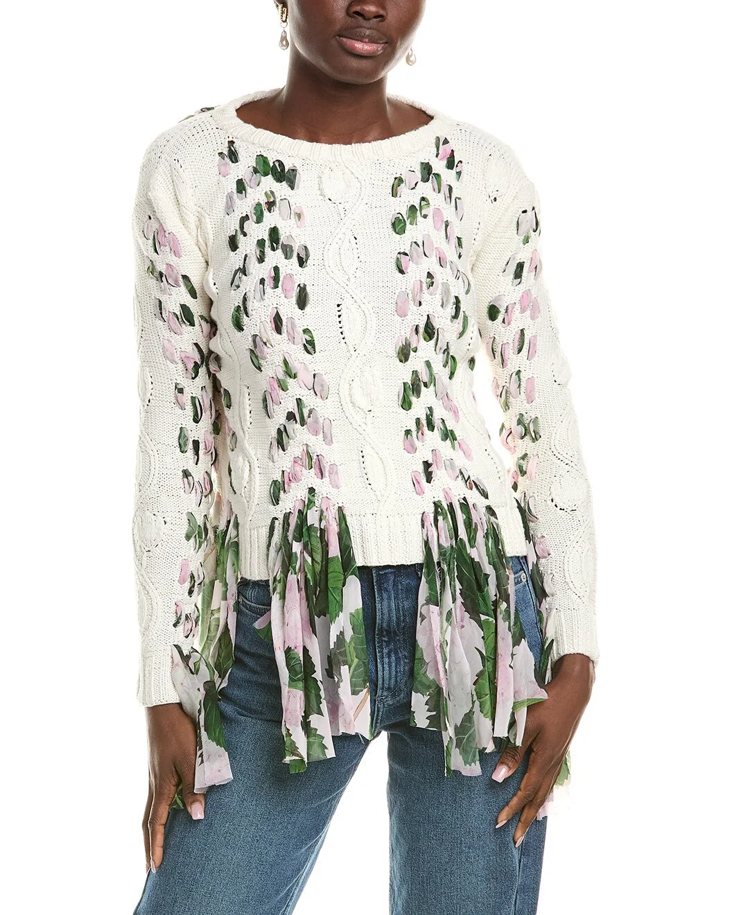 - About the brand: Feminine. Transcendent. Enduring. - Sweater in ivory with crewneck and printed chiffon lacing - Approximately 30in from shoulder to hem - Model is 5'10 and is wearing a size small. Measurements may vary slightly by size. - 100% cotton - Combo: 100% polyester - Dry clean only - Made in the USA - Our products are 100% genuine. In some cases we purchase merchandise from trusted independent suppliers and not directly from the brand owner. In all cases we stand by the authenticity of every product sold on our site.
