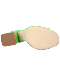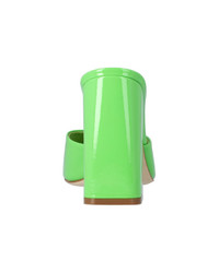 - About the brand: Bold designer footwear with contemporary Italian luxury. - Please note: Size selections are European. For US conversions, please reference size chart. - Anja Leather Mule in kiwi leather with block heel and open toe - Slip-on styling - Lightly padded leather insole - Smooth leather sole - 4.1in heel - Please note: All measurements are approximate and were taken from a size 37; slight variations may occur. - Made in Italy