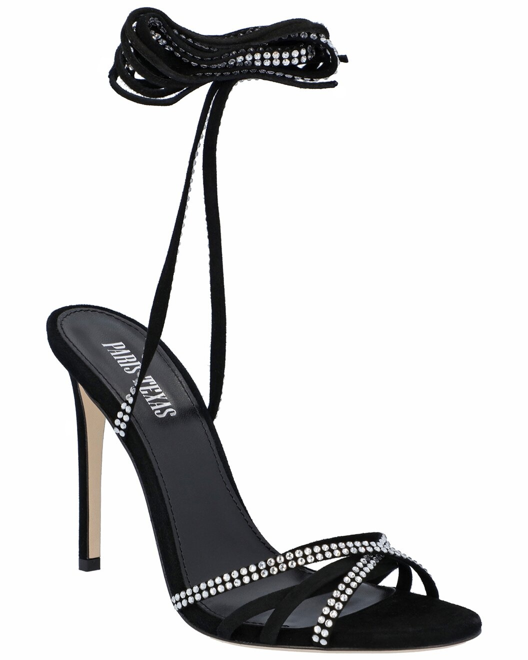 - About the brand: Bold designer footwear with contemporary Italian luxury. - Please note: Size selections are European. For US conversions, please reference size chart. - Holly Nicole Leather Sandal in black diamond leather with crossover straps, slinky ties, ruby-hued crystals - Lace-up closure - Lightly padded leather insole - Smooth leather sole - 4.5in heel - Please note: All measurements are approximate and were taken from a size 40; slight variations may occur. - Made in Italy