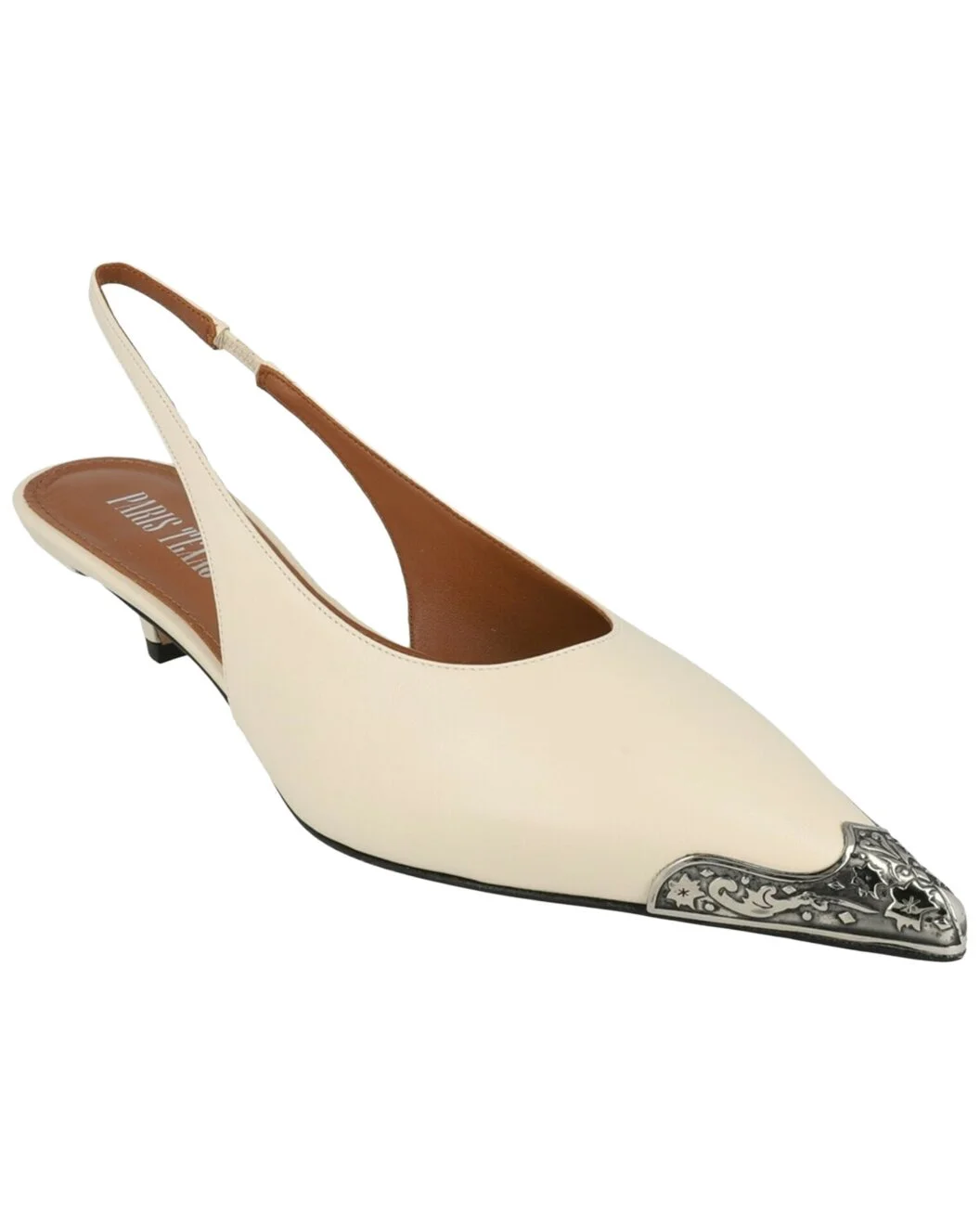 - About the brand: Bold designer footwear with contemporary Italian luxury. - Made in Italy - Jessica Leather Pump in milk leather and antiqued silver-tone hardware - Strap - Smooth leather sole