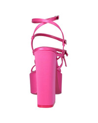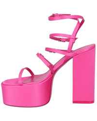 - About the brand: Bold designer footwear with contemporary Italian luxury. - Please note: Size selections are European. For US conversions, please reference size chart. - Jessica Sandal in flamingo viscose, silk with narrow straps and silver-tone buckles - Adjustable ankle strap with buckle closure - Lightly padded leather insole - Smooth leather sole - 5in heel - 2.5in platform - Please note: All measurements are approximate and were taken from a size 38; slight variations may occur. - Made in Italy