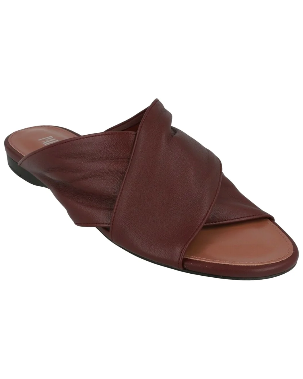 - About the brand: Bold designer footwear with contemporary Italian luxury. - Made in Italy - Maria Leather Sandal in maroon leather - Slides on - Smooth leather sole