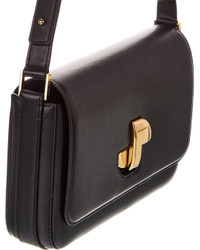 - Color/material: black leather - Design details: gold-tone hardware - Interior design details: leather lining, wall pocket - Measures 10.5in wide x 6.75in high x 3in deep - Adjustable shoulder strap drops 13in - Fold-over flap with turnlock closure - Made in Spain - Please note: All measurements were taken by hand and are approximate; slight variations may occur.