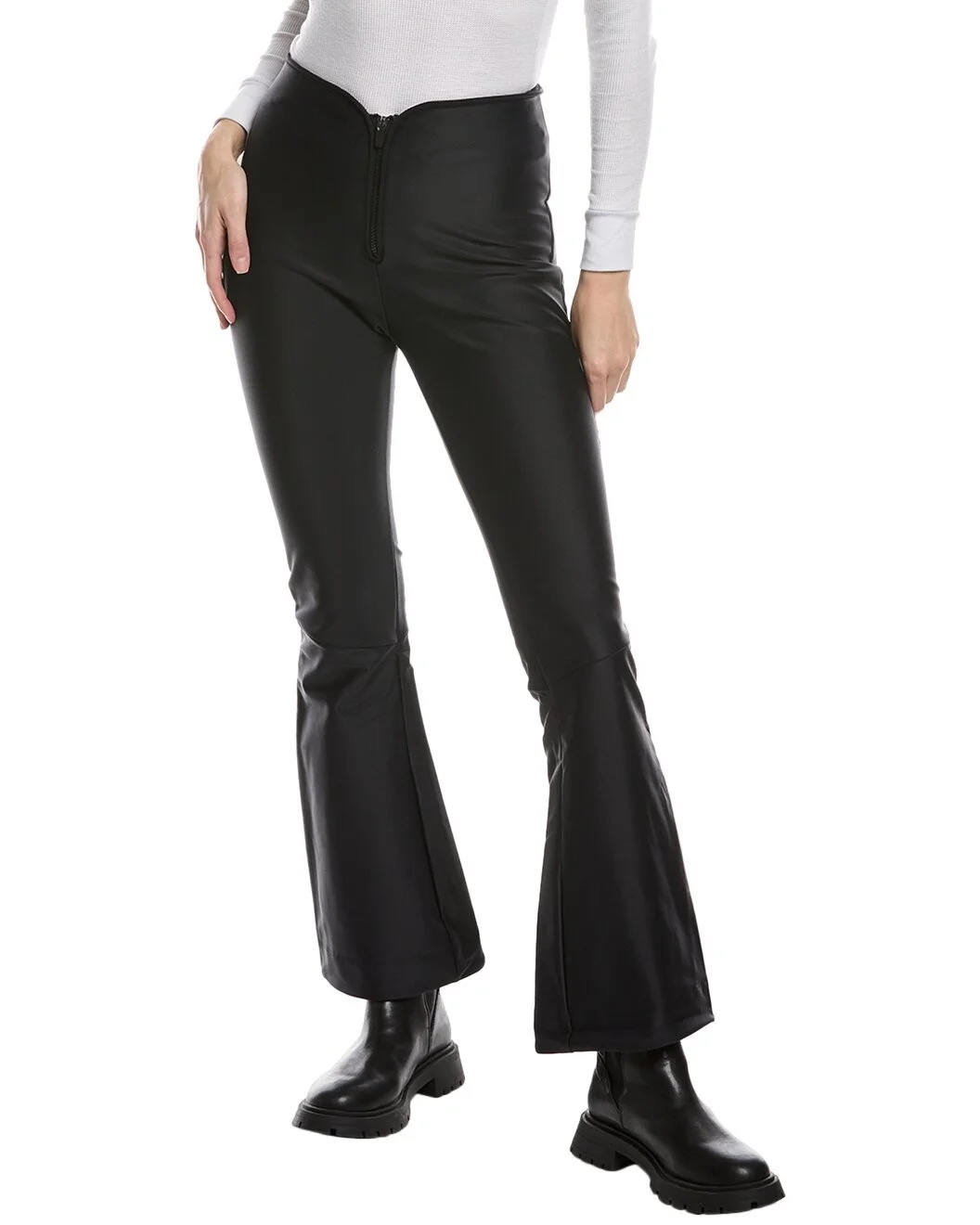 - Color/pattern: black - Inseam approximately 30in; 11in rise - Model is 5'9 and is wearing a size small. Measurements may vary slightly by size. - Design details: elastic waist and flare leg - Zip fly - 78% polyamide, 22% elastane - Back Membrane: 90% polyester, 10% elastane - Machine wash