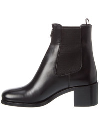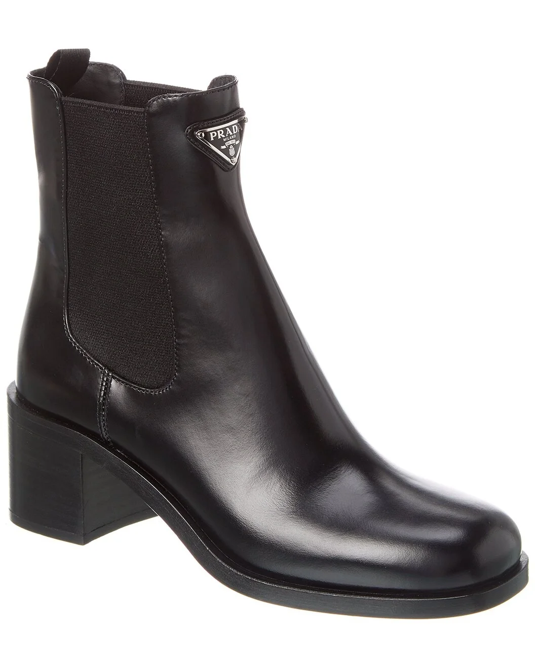 - About the brand: Classic, sporty, signature style from Italy. - Please note: Size selections are European. For US conversions, please reference size chart. - Made in Italy - Brushed Leather Bootie in black leather and steel-finish hardware with triangle logo accent - Elasticized slip-on style - Lightly padded leather insole - Smooth leather sole - 2.5in heel - 5.5in shaft - 10in boot circumference - Please note: All measurements are approximate and were taken from a size 37; slight variations may occur. - The Boot Size Guide - Our products are 100% genuine. In some cases we purchase merchandise from trusted independent suppliers and not directly from the brand owner. In all cases we stand by the authenticity of every product sold on our site. - We are NOT an authorized dealer of this product.