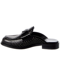 - About the brand: Classic, sporty, signature style from Italy. - Please note: Size selections are European. For US conversions, please reference size chart. - Made in Italy - Brushed Leather Mule in black leather and steel finish hardware with triangle logo and stud embellishments - Lightly padded leather insole - Man-made sole - 1in heel - Please note: All measurements are approximate and were taken from a size 37; slight variations may occur. - Our products are 100% genuine. In some cases we purchase merchandise from trusted independent suppliers and not directly from the brand owner. In all cases we stand by the authenticity of every product sold on our site. - We are NOT an authorized dealer of this product.