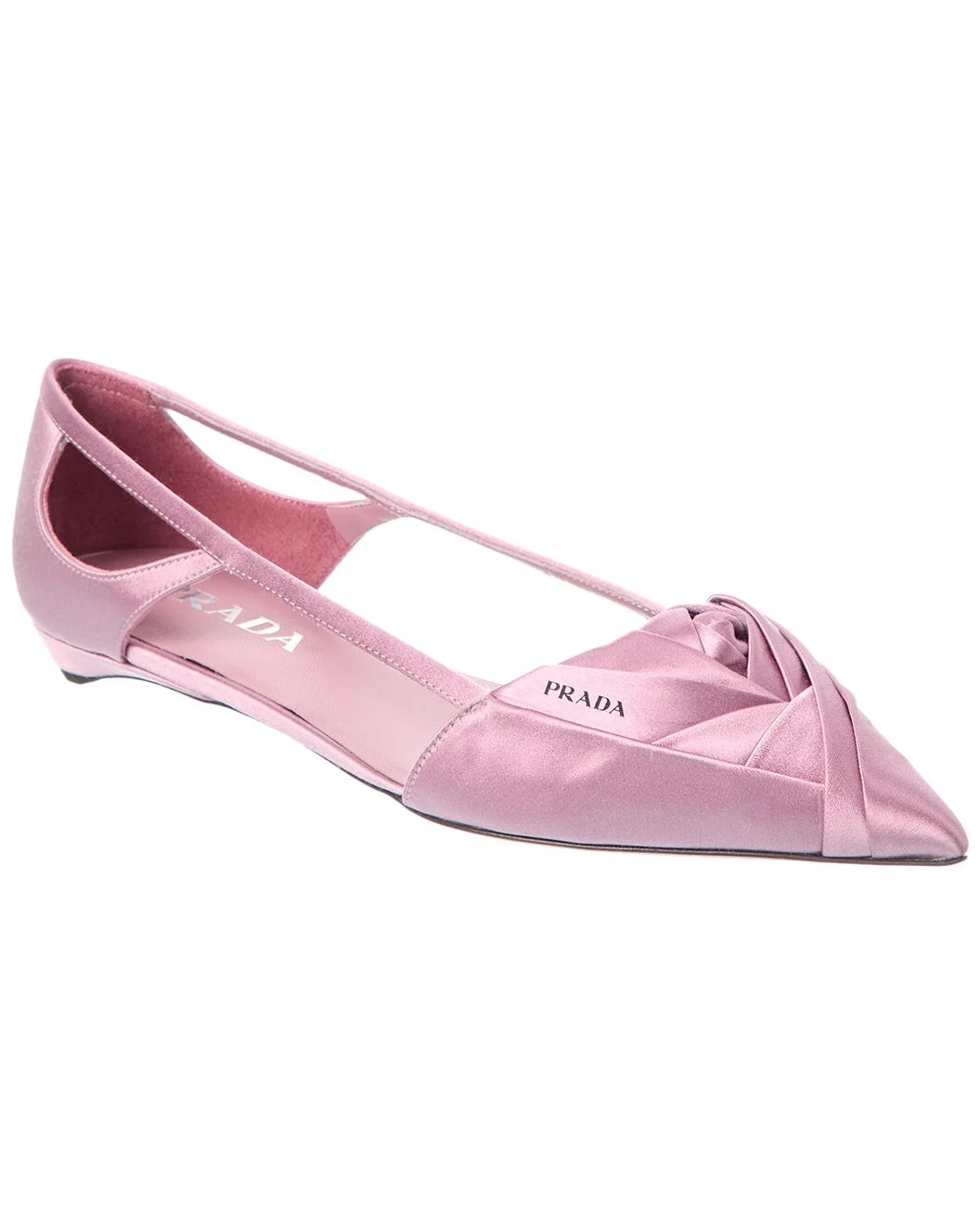 Prada Cutout Satin Pointy-Toe Ballet Flat