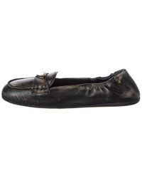 - About the brand: Classic, sporty, signature style from Italy. - Please note: Size selections are European. For US conversions, please reference size chart. - Made in Italy - Logo Leather Loafer in black distressed leather and gold-plated hardware with triangle logo accent and elastic back - Lightly padded leather insole - Man-made sole - Our products are 100% genuine. In some cases we purchase merchandise from trusted independent suppliers and not directly from the brand owner. In all cases we stand by the authenticity of every product sold on our site. - We are NOT an authorized dealer of this product.