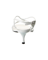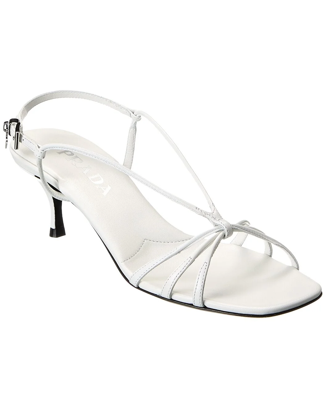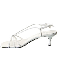 - About the brand: Classic, sporty, signature style from Italy. - Please note: Size selections are European. For US conversions, please reference size chart. - Made in Italy - Logo Leather Sandal in white leather and steel finish hardware with triangle logo charm at strap - Adjustable ankle strap with buckle closure - Smooth leather insole - Smooth leather sole - 2in heel - Please note: All measurements are approximate and were taken from a size 40.5; slight variations may occur. - Our products are 100% genuine. In some cases we purchase merchandise from trusted independent suppliers and not directly from the brand owner. In all cases we stand by the authenticity of every product sold on our site. - We are NOT an authorized dealer of this product.