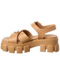 - About the brand: Classic, sporty, signature style from Italy. - Please note: Size selections are European. For US conversions, please reference size chart. - Made in Italy - Monolith Rubber Sandal in brown rubber and steel finish hardware with triangle logo accent - Adjustable ankle strap with buckle closure - Smooth insole - Rubber lug sole - 2in heel - 1.5in platform - Please note: All measurements are approximate and were taken from a size 37; slight variations may occur. - Our products are 100% genuine. In some cases we purchase merchandise from trusted independent suppliers and not directly from the brand owner. In all cases we stand by the authenticity of every product sold on our site. - We are NOT an authorized dealer of this product.