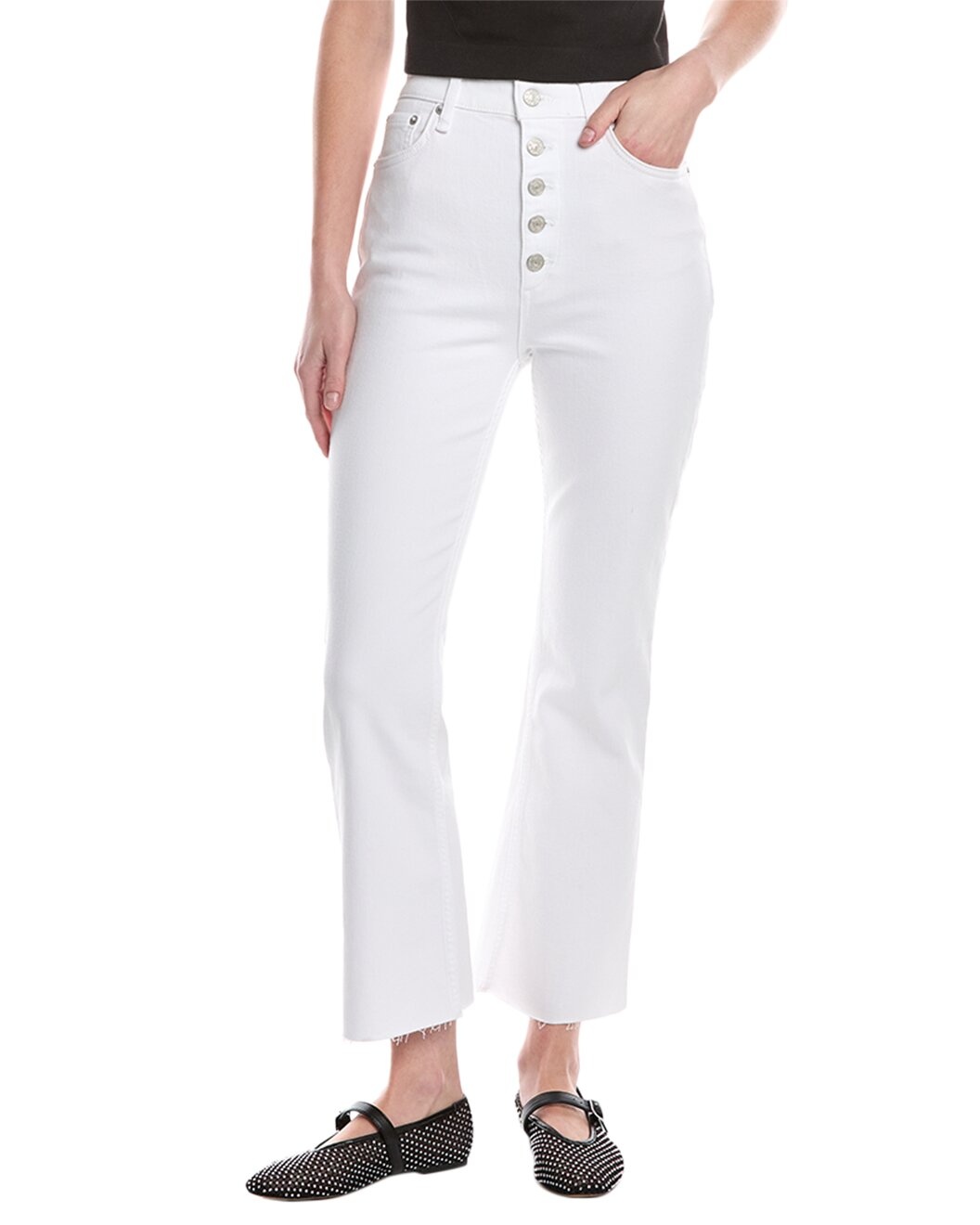 - About the brand: For more than twenty years, rag & bone has been committed to making timeless yet modern fashion with an understated edge. Inspired by New York with a strong focus on quality and comfort, every rag & bone style is distinctly original. - Casey High-Rise Ankle Flare in optic white with belt loops and classic five-pocket styling - Inseam approximately 27in - 11.5in front rise - Leg opening has an approximate 18in circumference - This item tends to run small (based on Member feedback). We recommend sizing up for your best fit. Model is 5'9 and is wearing a size 27. Measurements may vary slightly by size. - Button fly - 77% organic cotton, 16% lyocell, 5% polyester, 2% elastane - Machine wash - Imported - The Women's Denim Guide