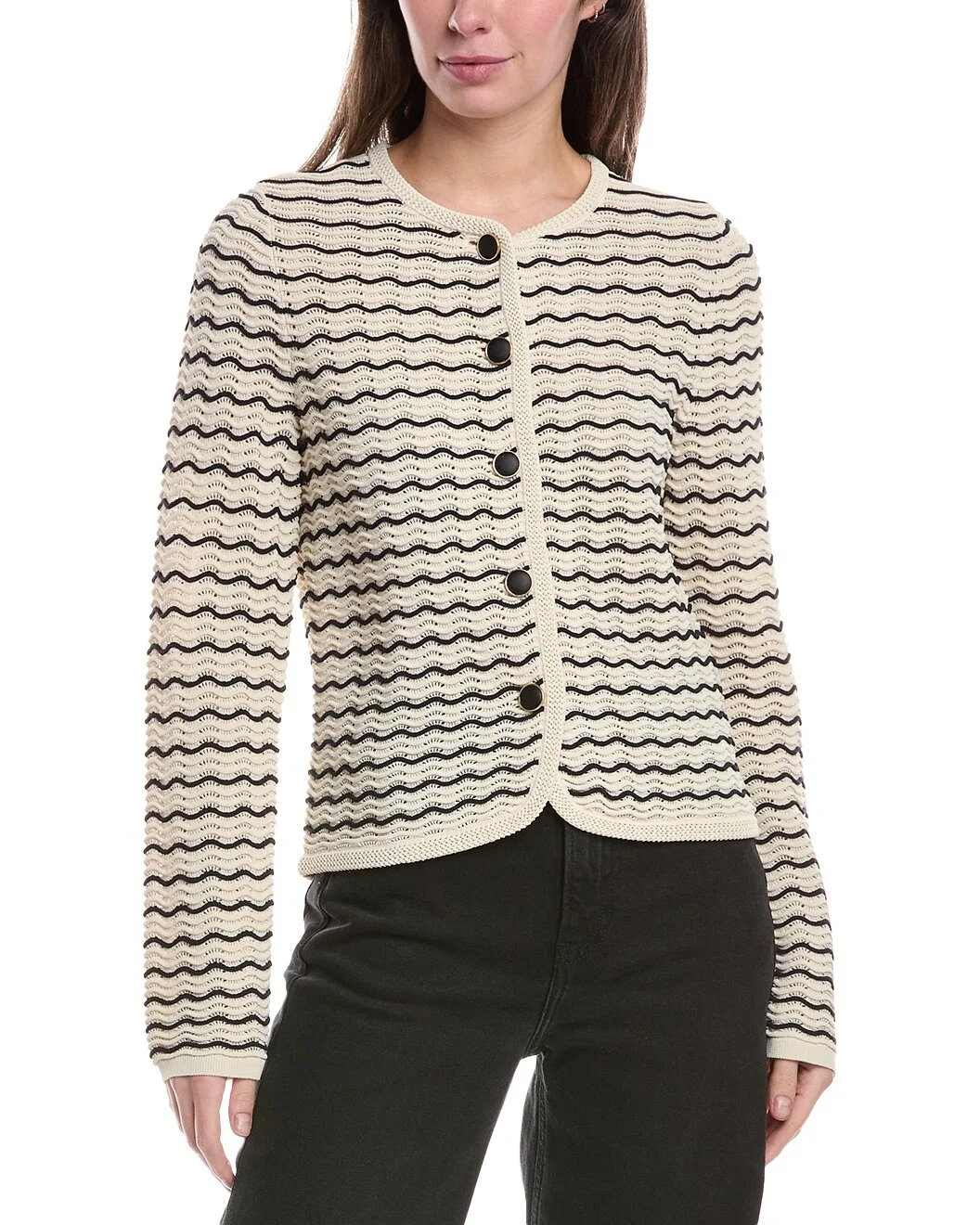 - Guaranteed for Easter. Delivery restrictions apply. - See disclaimer. - About the brand: For more than twenty years, rag & bone has been committed to making timeless yet modern fashion with an understated edge. Inspired by New York with a strong focus on quality and comfort, every rag & bone style is distinctly original. - Elisa Stripe Cardigan in turtledove - Approximately 21in from shoulder to hem - This item tends to run small (based on Member feedback). We recommend sizing up for your best fit. Model is 5'9 and is wearing a size small. Measurements may vary slightly by size. - Button front - 60% cotton 40% nylon - Dry clean only - Imported