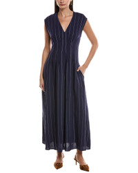 - About the brand: For more than twenty years, rag & bone has been committed to making timeless yet modern fashion with an understated edge. Inspired by New York with a strong focus on quality and comfort, every rag & bone style is distinctly original. - Ines Stripe Midi Dress in deep navy stripe with V-neck - Approximately 50in from shoulder to hem - This item tends to run small (based on Member feedback). We recommend sizing up for your best fit. Model is 5'9 and is wearing a size 2. Measurements may vary slightly by size. - Center back zipper closure - 85% rayon 14% nylon 1% polyester - Machine wash - Imported
