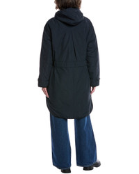 - About the brand: For more than twenty years, rag & bone has been committed to making timeless yet modern fashion with an understated edge. Inspired by New York with a strong focus on quality and comfort, every rag & bone style is distinctly original. - Regan Coat in salute with removable drawstring hood, four front pockets, belted waist, strap at cuffs, curved hem and quilted lining - Approximately 37in from shoulder to hem - This item tends to run small (based on Member feedback). We recommend sizing up for your best fit. Model is 5'9 and is wearing a size small. Measurements may vary slightly by size. - Zipper closure and button front - Medium weight - 100% nylon - Lining: 61% cotton, 39% nylon - Fill: 100% polyester - Dry clean only - Imported