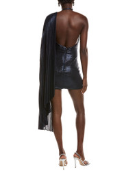 - Color/pattern: ink - Approximately 29in from shoulder to hem - Model is 5'10 and is wearing a size small. Measurements may vary slightly by size. - Design details: pleated skirt, asymmetrical neck, and scarf tie - Center back zip with hook-and-eye closure - 95% polyester, 5% spandex - Hand wash - Imported