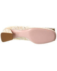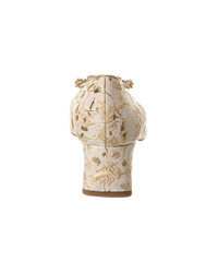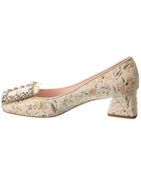 - About the brand: Effortless, timeless elegance. - Please note: Size selections are European. For US conversions, please reference size chart. - Made in Italy - Jacquard Pump in white and gold metallic jacquard fabric and gold-tone hardware with embellished square accent - Lightly padded leather insole - Smooth leather sole - 2in heel - Please note: All measurements are approximate and were taken from a size 37; slight variations may occur. - Our products are 100% genuine. In some cases we purchase merchandise from trusted independent suppliers and not directly from the brand owner. In all cases we stand by the authenticity of every product sold on our site.