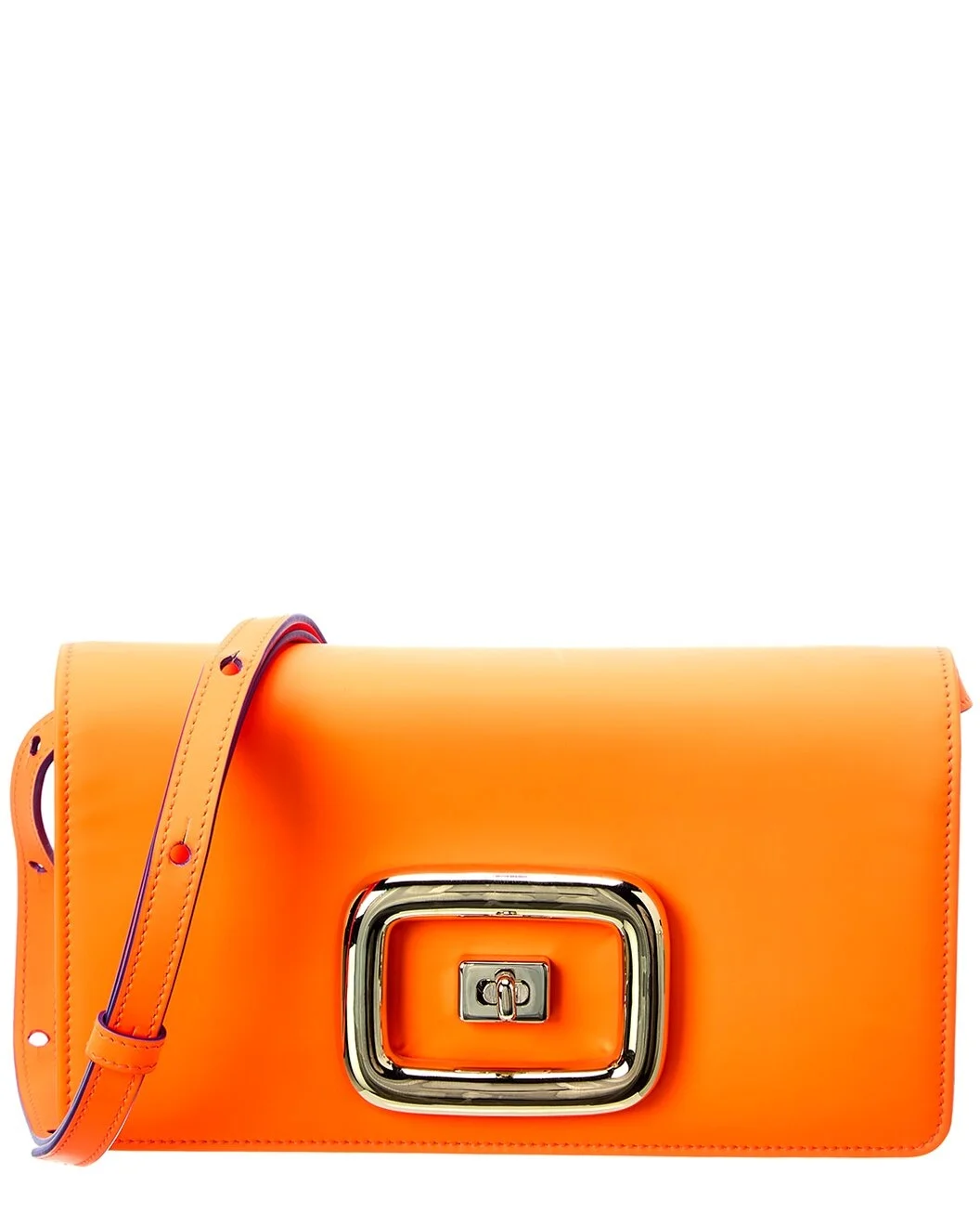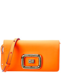 - About the brand: Effortless, timeless elegance. - Made in Italy - Viv' Choc Mini Leather Clutch in orange leather and gold-tone hardware - Interior design details: leather lining, interior pocket - Measures 8.3in wide x 4.5in high x 2in deep - Adjustable and removable shoulder strap drops 24in - Fold-over flap with turnlock closure - Please note: All measurements were taken by hand and are approximate; slight variations may occur. - Our products are 100% genuine. In some cases we purchase merchandise from trusted independent suppliers and not directly from the brand owner. In all cases we stand by the authenticity of every product sold on our site.