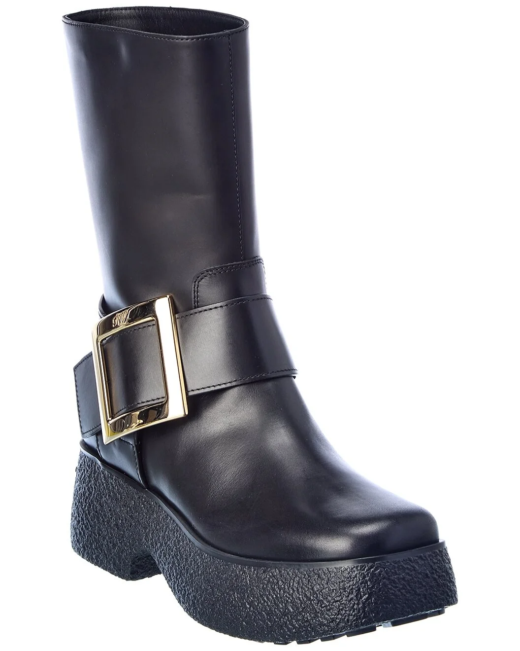 - About the brand: Effortless, timeless elegance. - Please note: Size selections are European. For US conversions, please reference size chart. - Made in Italy - Viv Rangers Leather Platform Boot in black leather and gold-tone hardware with buckle accent - Lightly padded leather insole - Rubber sole with traction - 2.5in heel - 1.5in platform - 9in shaft - 12in boot circumference - Please note: All measurements are approximate and were taken from a size 37; slight variations may occur. - Our products are 100% genuine. In some cases we purchase merchandise from trusted independent suppliers and not directly from the brand owner. In all cases we stand by the authenticity of every product sold on our site. - The Boot Size Guide