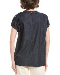 - Color/pattern: dark denim - Approximately 28in from shoulder to hem - Model is 5'9 and is wearing a size 4. Measurements may vary slightly by size. - Design details: elasticized neck and cuffs - Center back zipper - 100% cotton - Machine wash - Imported