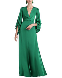 - Color/pattern: emerald - Approximately 60in from shoulder to hem - Measurements taken from a size 2 and may vary slightly by size. - Center back zip - 100% polyester - Lining: 100% Polyester - Dry clean only - Imported