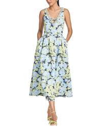 - Color/pattern: garden club - Design details: V-neck, embellished in crystals and pearls, embellished bow - Side seam zipper - 100% polyester - Dry clean only - Imported